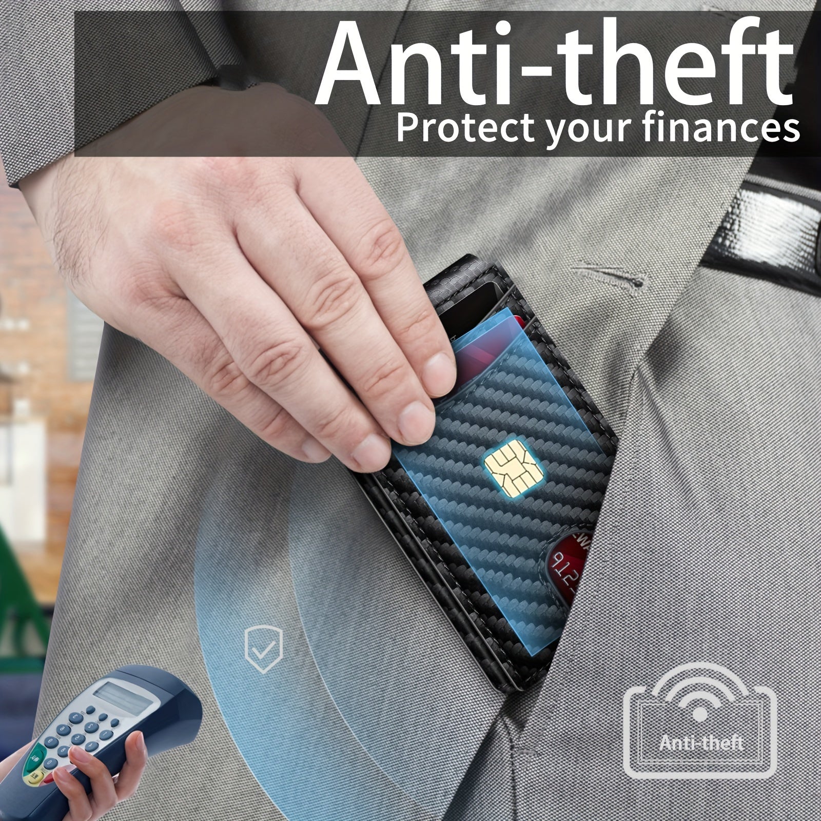 - Military-grade RFID blocking shields protecting against electronic theft