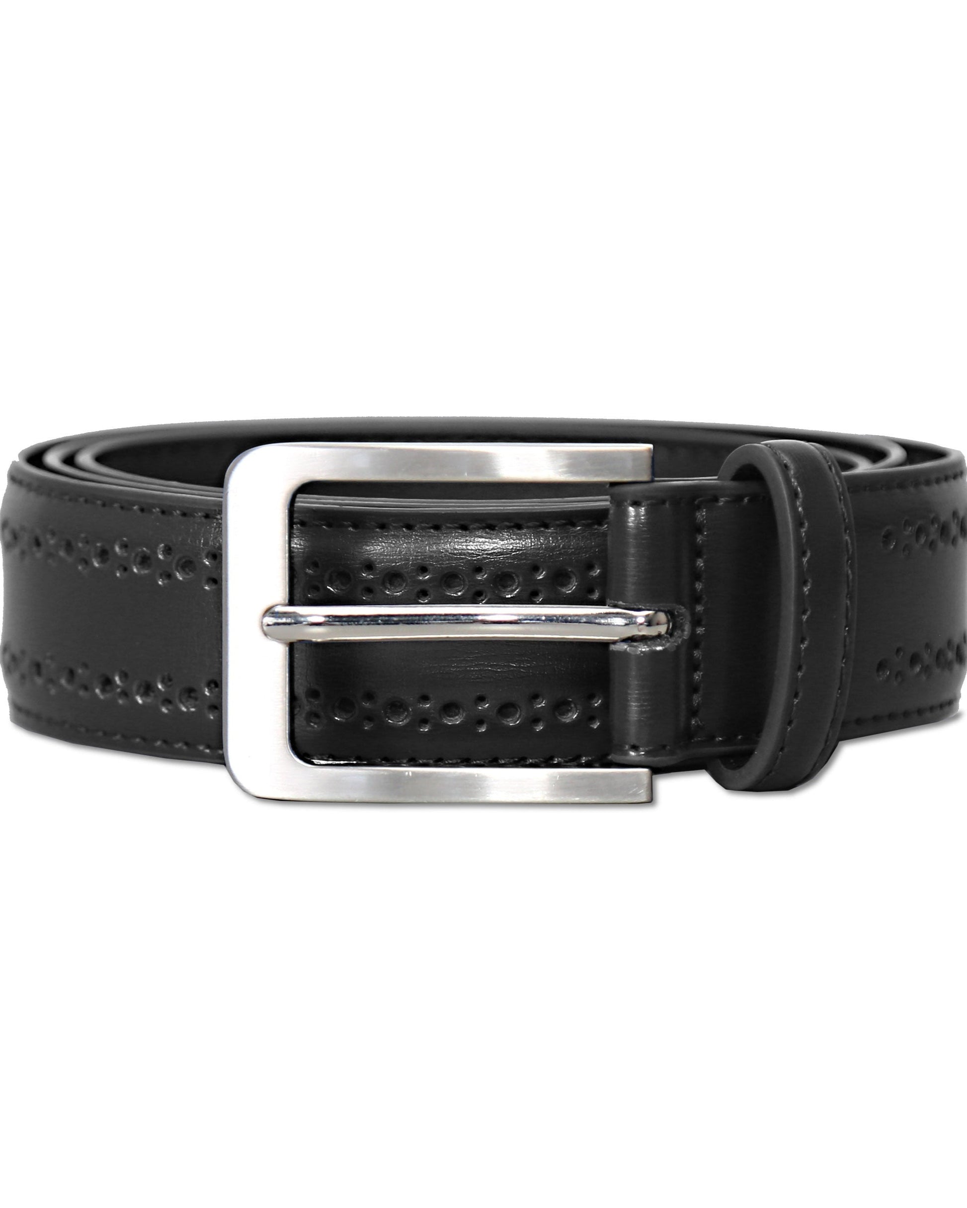The perfect pair to our dress pants, our perforated black belt is crafted from premium leather and features silver-toned hardware.