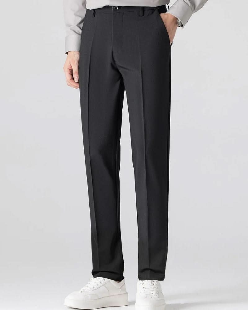 Slim-Fit Trousers: Cut with precision and finished with front creases, these trousers offer a clean, polished appearance. Available in two versatile options: